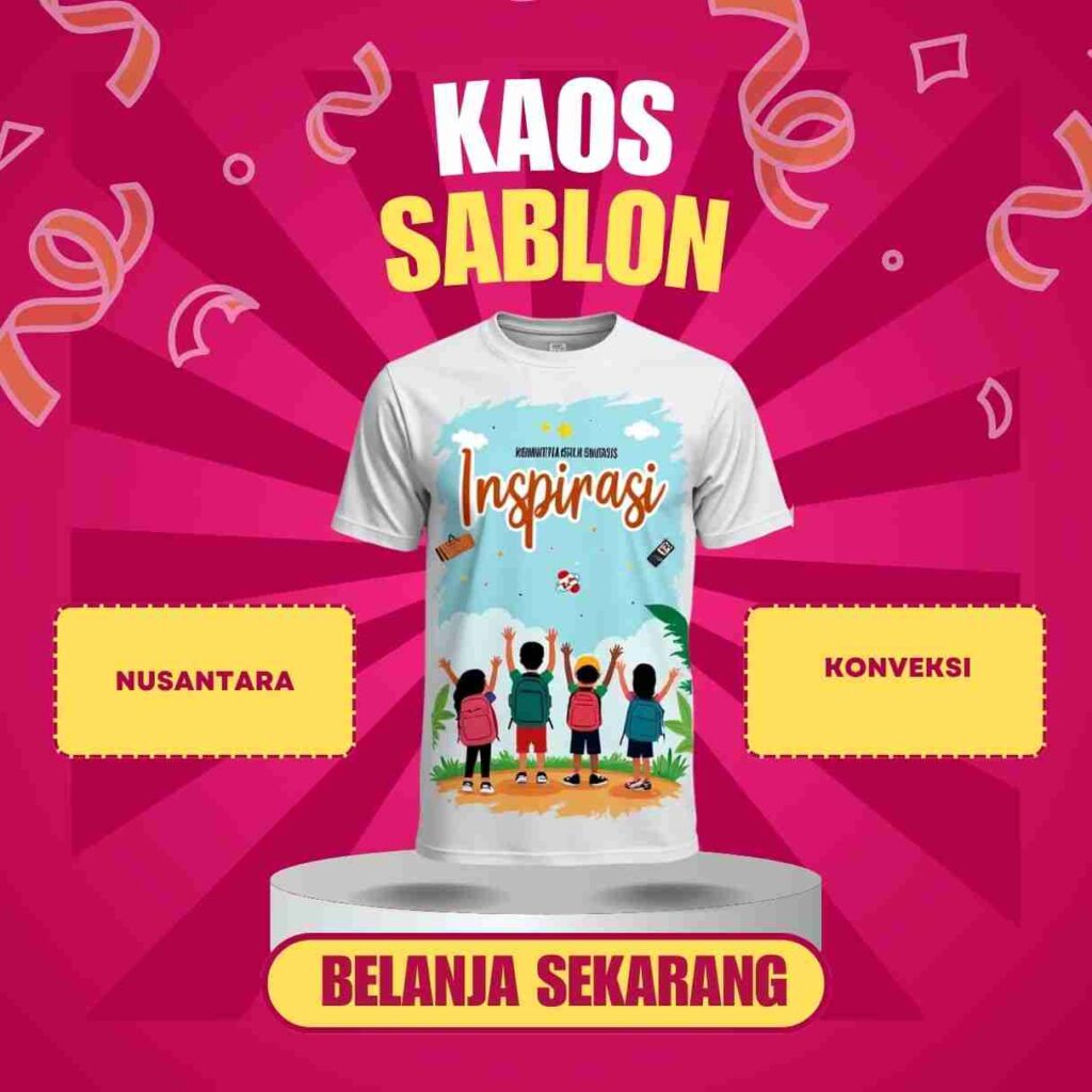 Dari desain Kaos sablon komunitas Kelas Inspirasi untuk acara sosial, kaos sablon komunitas inspiratif dengan desain kreatif, Kaos komunitas Kelas Inspirasi dengan bahan berkualitas, Kaos sablon custom untuk anggota Kelas Inspirasi, Kaos komunitas Kelas Inspirasi dengan pesan edukatif, Kaos sablon komunitas Kelas Inspirasi untuk kegiatan sukarela dan Desain kaos sablon komunitas Kelas Inspirasi yang unik kreatif hingga bahan berkualitas tinggi, kaos sablon ini memiliki banyak manfaat yang memperkuat hubungan antar anggota serta menyebarkan pesan edukatif yang menginspirasi.